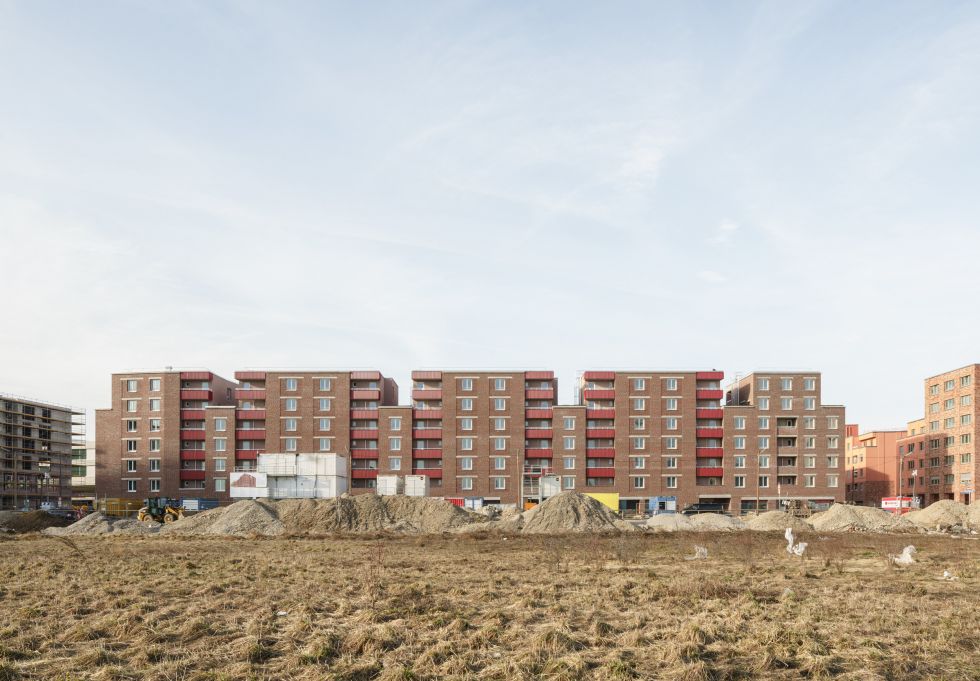 Unlike the buildings in the north and south of the quarter, Building 2 has a red clinker brick façade facing the Aubinger Allee. It thus corresponds to the urban significance of this building and at the same time creates a sustainable and robust residential façade.