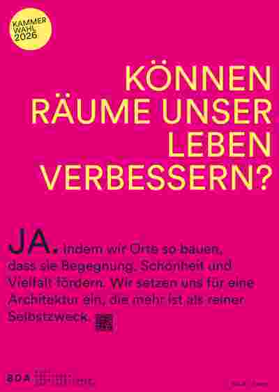 vom 26.03. bis zum 30.04.2026 stehen die Wahlen zur 14. Vertretersammlung der Bayerischen Architektenkammer an – einer zentralen berufspolitischen Gelegenheit für uns Architektinnen und Architekten, unsere gesellschaftliche und berufliche Zukunft mitzugestalten. Deshlab laden auch wir Sie herzlichst dazu ein Ihre Stimme zu nutzen und sich an der Kammerwahl zu beteiligen.