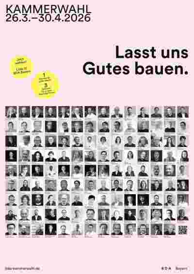 vom 26.03. bis zum 30.04.2026 stehen die Wahlen zur 14. Vertretersammlung der Bayerischen Architektenkammer an – einer zentralen berufspolitischen Gelegenheit für uns Architektinnen und Architekten, unsere gesellschaftliche und berufliche Zukunft mitzugestalten. Deshlab laden auch wir Sie herzlichst dazu ein Ihre Stimme zu nutzen und sich an der Kammerwahl zu beteiligen.