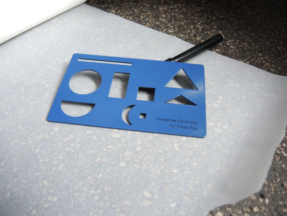Every year Palais Mai commissions an artist, designer, photographer, cook to create a New Year's multiple. For the 2014 edition Friederike Daumiller made a bottle opener/drawing template for us.