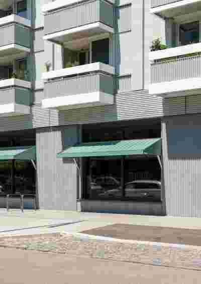 The public base speaks a robust but calm language: with large openings, canopies assigned to them and joined profiled precast concrete elements. The façade of the upper floors is finely profiled with projections and recesses. Different elements - metal-clad parapets, vertical bands and two window formats - form a varied composition, sometimes with breaks. The profiling and order refers to the Beton Brut neighbourhood and interprets it into a house in the structure that is committed to the context but still independent.