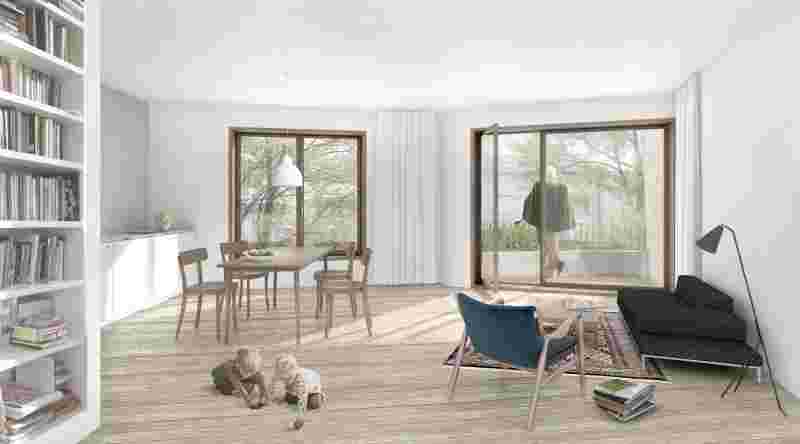 Die beiden Baukörper beherbergen jeweils zwei Häuser die als 4- und 5-Spänner organisiert sind (im 4. OG 2-Spänner). Eine Flexibilität der Wohnungsgrößen wird über schaltbare Räume gewährleistet, durch die eine Anpassung des Wohnungsschlüssels möglich ist.