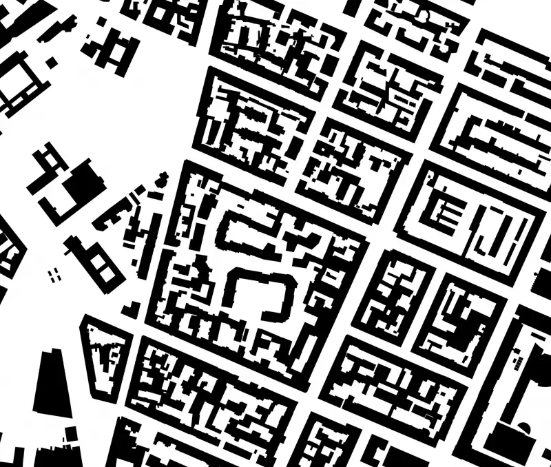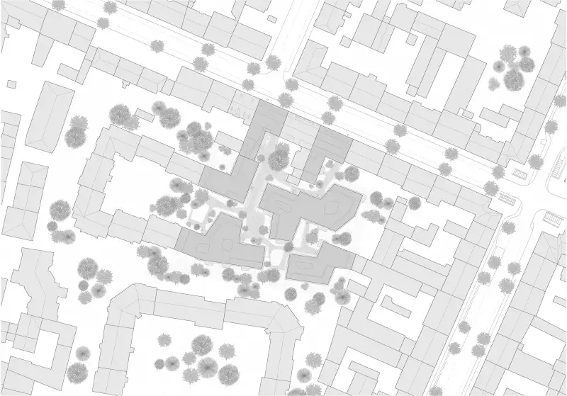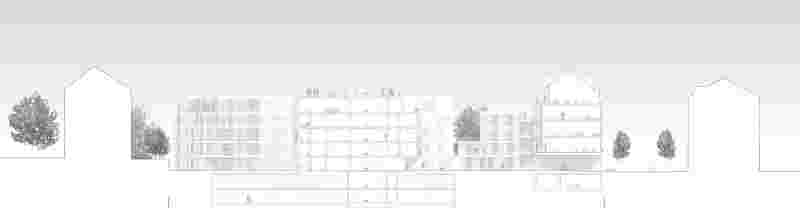 Die Maxvorstadt wird durch eine starke Polarität belebter Straßenräume und privaterer Innenhofsituationen geprägt. Die Unterschiedlichkeit der Lagen „an der Straße“ und „im Hof“ wird als Merkmal städtischen Wohnens in Form von „verschränkten Höfen“ als kontinuierliche, gemeinschaftliche städtische Räume weiter entwickelt. Fünfgeschossige Gebäude, die sich zu den Höfen und je nach Lagegunst auf vier Geschosse abstaffeln, bilden die Grundbausteine des Gefüges. Durchblicke werden gefasst, Passagen entstehen und bilden eindeutige Adressen an der Theresienstraße aus.